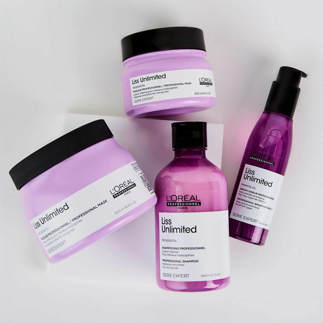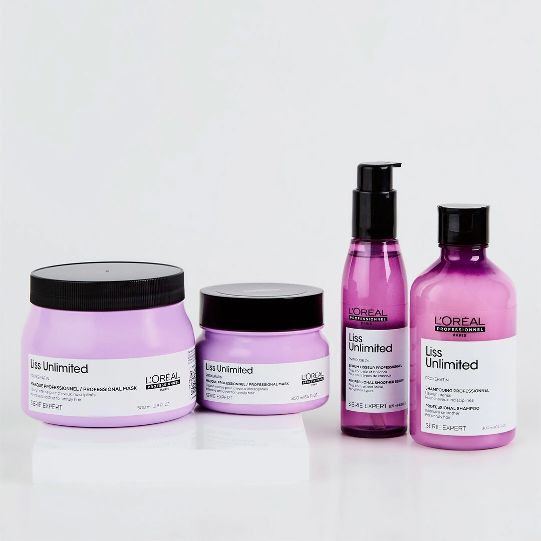 Para un resultado de cabello brillante. Resultados óptimos y duraderos con el uso continuado de la rutina completa Liss Unlimited para alisar el cabello.