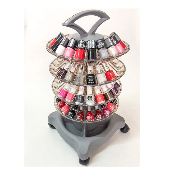 Práctico Exhibidor confeccionado en plástico resistente para exponer y almacenar hasta 80 esmaltes de todo tipo.