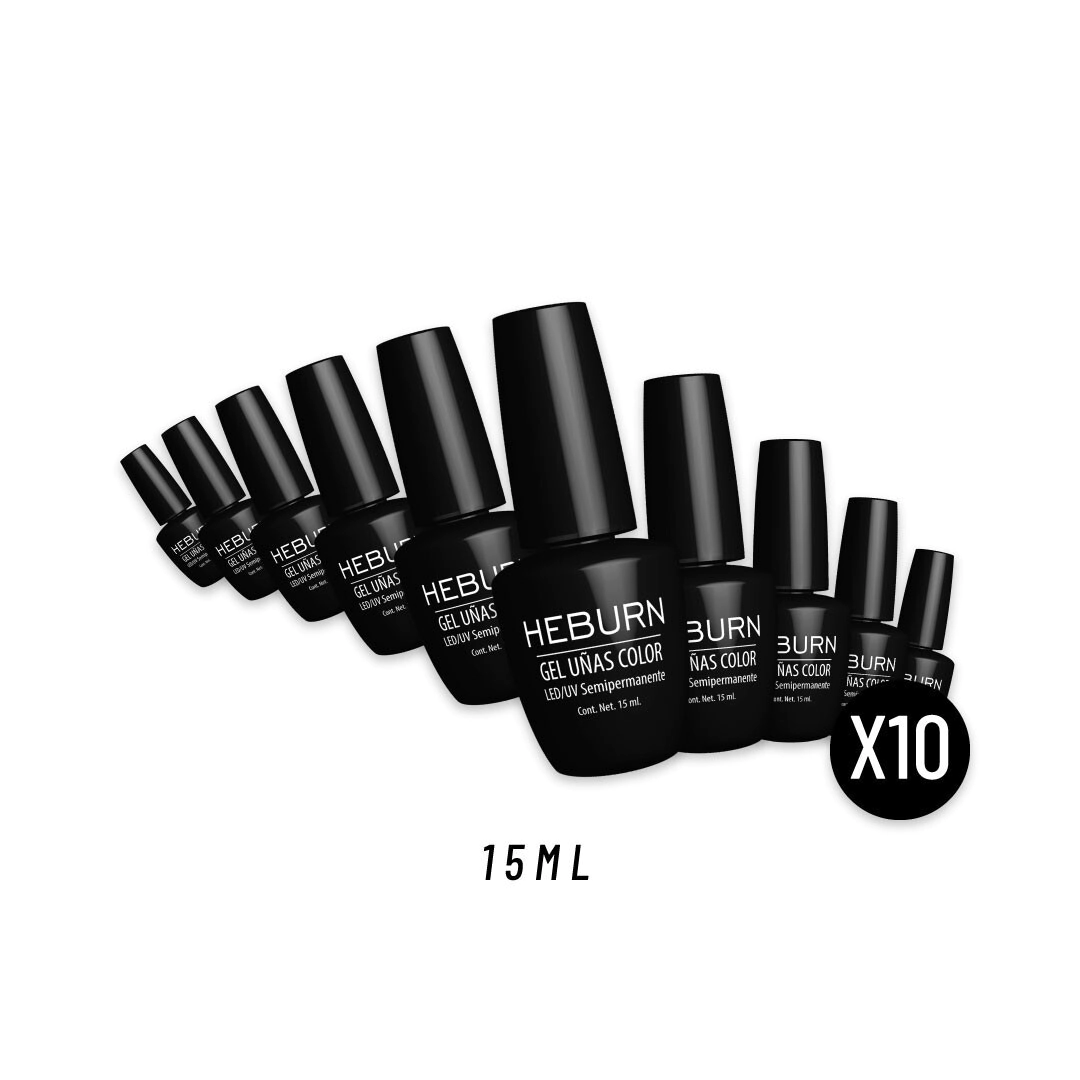 - 10 Esmaltes Heburn semipermanentes 15ml